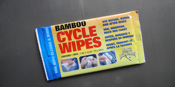 Our friends at White Lightning dropped off a pack of their Bamboo Cycle Wipes at our office last month. They are extremely effective at cleaning your bike on the go, or if it’s simply too cold to break out the hose and bucket. Just unwrap a wipe and touch up your frame or drivechain. Keep a spare in your commuter bag or seatpack for cleaning up dirty hands after a dropped chain or roadside repair.